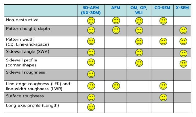 The 3D-AFM offers a non-destructive, high-resolution, full-profile measurement—with automation making it suitable for in-line process control, as shown in Table 1.