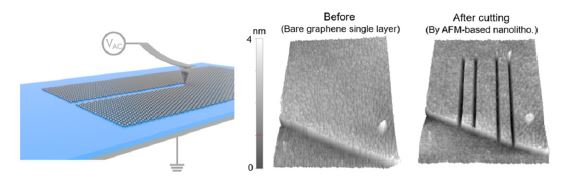 In this study, we conducted a feasibility test to optimize AFM-based nanolithography parameters to achieve precise nanopatterning on a single layer of graphene (Fig. 2). Through a series of trials, we systematically investigated the influence of key variables on the cutting quality and resolution of nanometer-scale lines. By enhancing the understanding of AFM-based nanolithography techniques, we aim to contribute to the advancement of graphene applications across various fields, particularly in the development of next-generation nanodevices.