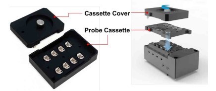 Figure 7. Probe cassette exchange is done by placing an 8-probe cassette on the top of the ATX module and unscrewing the knob of the cassette cover